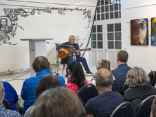 Im Beiprogramm konnten die zahlreichen Besucher musikalische Darbietungen von Künstlern unterschiedlicher Richtungen genießen. Eröffnet wurde die Veranstaltung mit einem Grußwort der Kulturdezernentin Christiane Schüßler. Am Abend der Vernissage traten Künstler aus den Reihen der "Blauen Rheydter" auf mit Texten zum Thema Freiheit. Der Lyriker "Stachel" trug in einem Videobeitrag selbst vertonte Klassiker zum Thema vor. Ein großer Teil des Abendprogramms wurde durch Georges Burki gestaltet. Der international agierende Künstler aus der Schweiz ist in ganz Europa mit seinem Jazz-Trio unterwegs. Für die Rheydter Kunsttage hatte er eine Weltpremiere mitgebracht, zum ersten Mal ein für ihn ganz neues Genre präsentiert. Mit einer von ihm selbst entwickelten KI hatte Burki immersive Videos hergestellt und diese dann mit Livemusik auf der elektronischen Geige begleitet. Dabei flossen auch Aufnahmen von Kunstwerken der ausstellenden Künstler ein, so dass es eine direkte Verbindung von realer zu virtueller Kunst gab. Die Eröffnungsveranstaltung war so zahlreich besucht, dass nicht alle Besucher die Darbietungen im Saal verfolgen konnten. An den drei Kunsttagen wurden insgesamt etwa 500 Besucher gezählt.